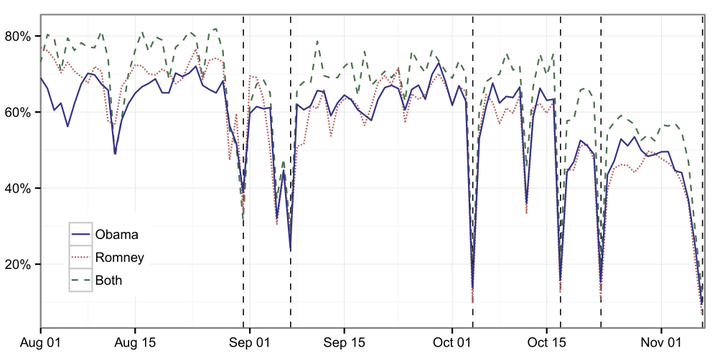 There is a large body of research on utilizing online activity as a survey of political opinion to predict real world election outcomes. There is considerably less work, however, on using this data to understand topic-specific interest and opinion amongst the general population and specific demographic subgroups, as currently measured by relatively expensive surveys. Here we investigate this possibility by studying a full census of all Twitter activity during the 2012 election cycle along with the comprehensive search history of a large panel of Internet users during the same period, highlighting the challenges in interpreting online and social media activity as the results of a survey. As noted in existing work, the online population is a non-representative sample of the offline world (e.g., the U.S. voting population). We extend this work to show how demographic skew and user participation is non-stationary and difficult to predict over time. In addition, the nature of user contributions varies substantially around important events. Furthermore, we note subtle problems in mapping what people are sharing or consuming online to specific sentiment or opinion measures around a particular topic. We provide a framework, built around considering this data as an imperfect continuous panel survey, for addressing these issues so that meaningful insight about public interest and opinion can be reliably extracted from online and social media data.