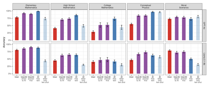 With the rapid adoption of LLM-based chatbots, there is a pressing need to evaluate what humans and LLMs can achieve together. However, standard benchmarks, such as MMLU, measure LLM capabilities in isolation (i.e., "AI-alone"). Here, we design and conduct a user study to convert MMLU questions into user-AI conversations, by seeding the user with the question and having them carry out a conversation with the LLM to answer their question. We release ChatBench, a new dataset with AI-alone, user-alone, and user-AI data for 396 questions and two LLMs, including 144K answers and 7,336 user-AI conversations. We find that AI-alone accuracy fails to predict user-AI accuracy, with significant differences across multiple subjects (math, physics, and moral reasoning), and we analyze the user-AI conversations to provide insight into how they diverge from AI-alone benchmarks. Finally, we show that fine-tuning a user simulator on a subset of improves its ability to estimate user-AI accuracies, increasing correlation on held-out questions by more than 20 points, creating possibilities for scaling interactive evaluation.